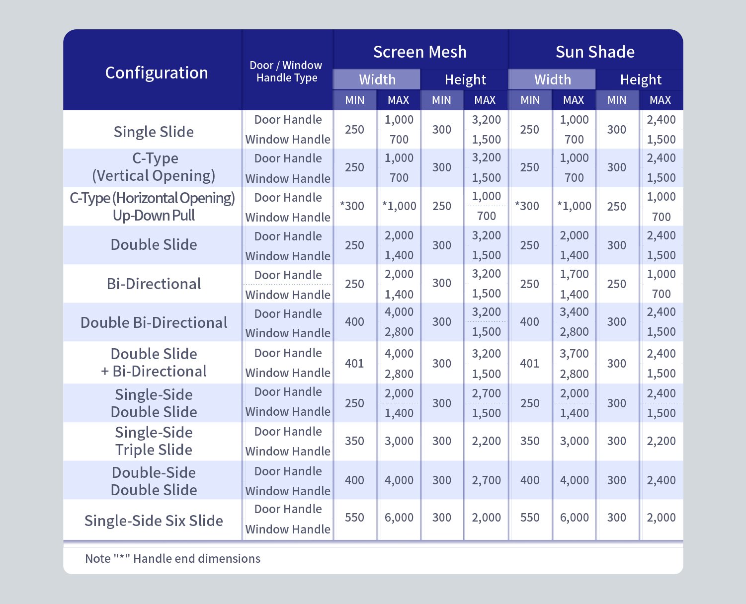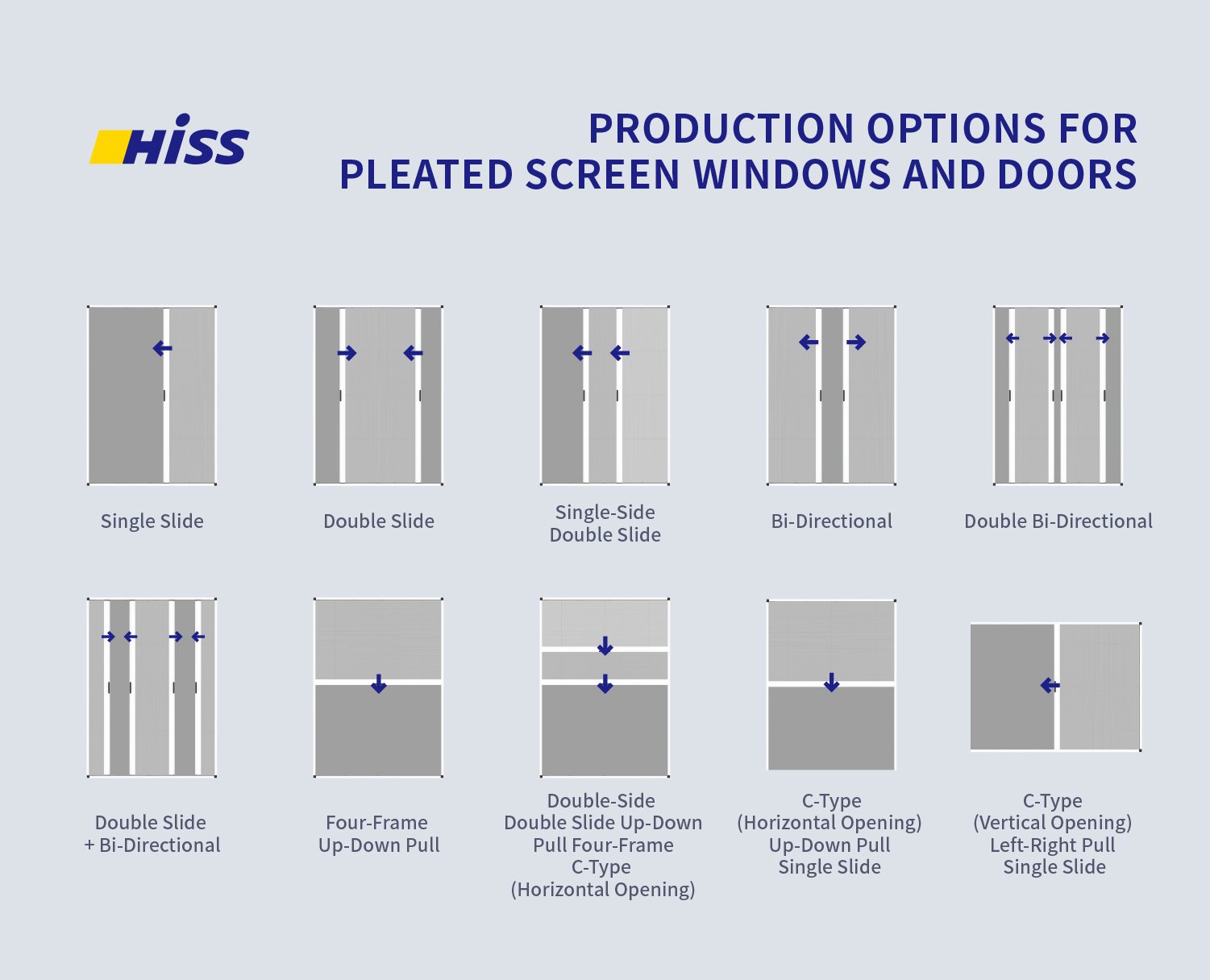 HISS Taroko’s pleated screen windows/doors can be manufactured in ten different configurations: ‘Single Slide’, ‘Double Slide’, ‘Single-Side Double Slide’, ‘Bi-Directional’, ‘Double Bi-Directional’, ‘Double Slide + Bi-Directional’, ‘Four-Frame Up-Down Pull’, ‘Single-Side Double Slide Up-Down Pull (C-Type available)’, ‘C-Type (Horizontal Opening) Up-Down Pull Single Slide’, and ‘C-Type (Vertical Opening) Left-Right Pull Single Slide’.